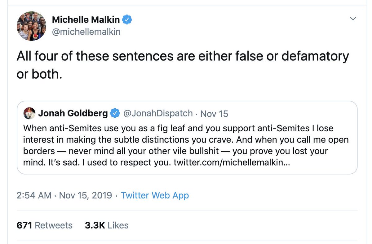 - Jonah Goldberg Sur Twitter So Here Michellemalkin Says I Was Either Lying Or Defaming Her By Saying She Covers For Anti Semites Three Days Earlier She Had Refused To Disavow A Holocaust . Définition, Synonymes, Citations, Traduction Dans Le Dictionnaire De La Langue Française.